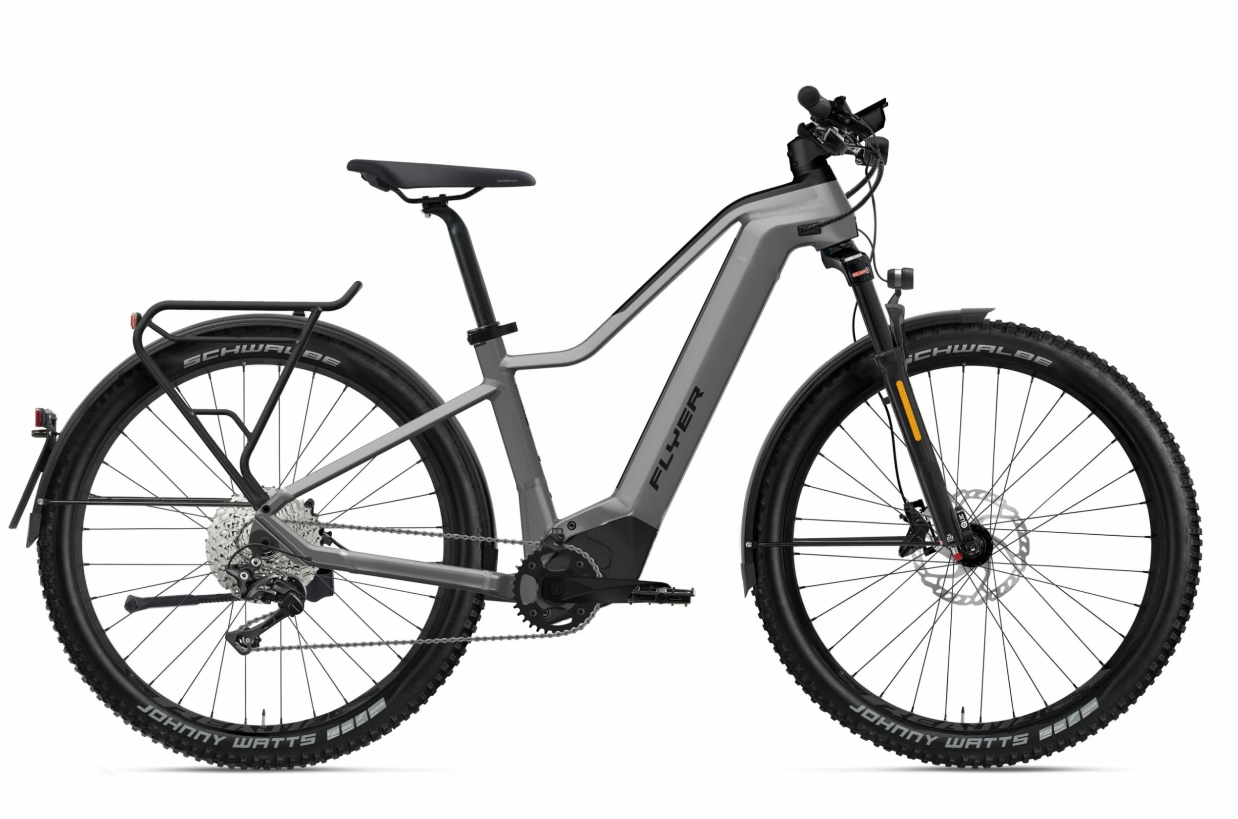 Le Flyer Goroc 2 6.30 HS 2022 est livré avec tout l’équipement nécessaire pour la ville ou les virées improvisées : garde-boue, porte-bagages, éclairage, réflecteur et béquille.