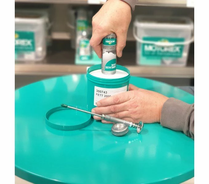 Le pistolet à graisse Bike Grease Gun Motorex se recharge facilement avec la graisse vélo Motorex Bike Grease 850g